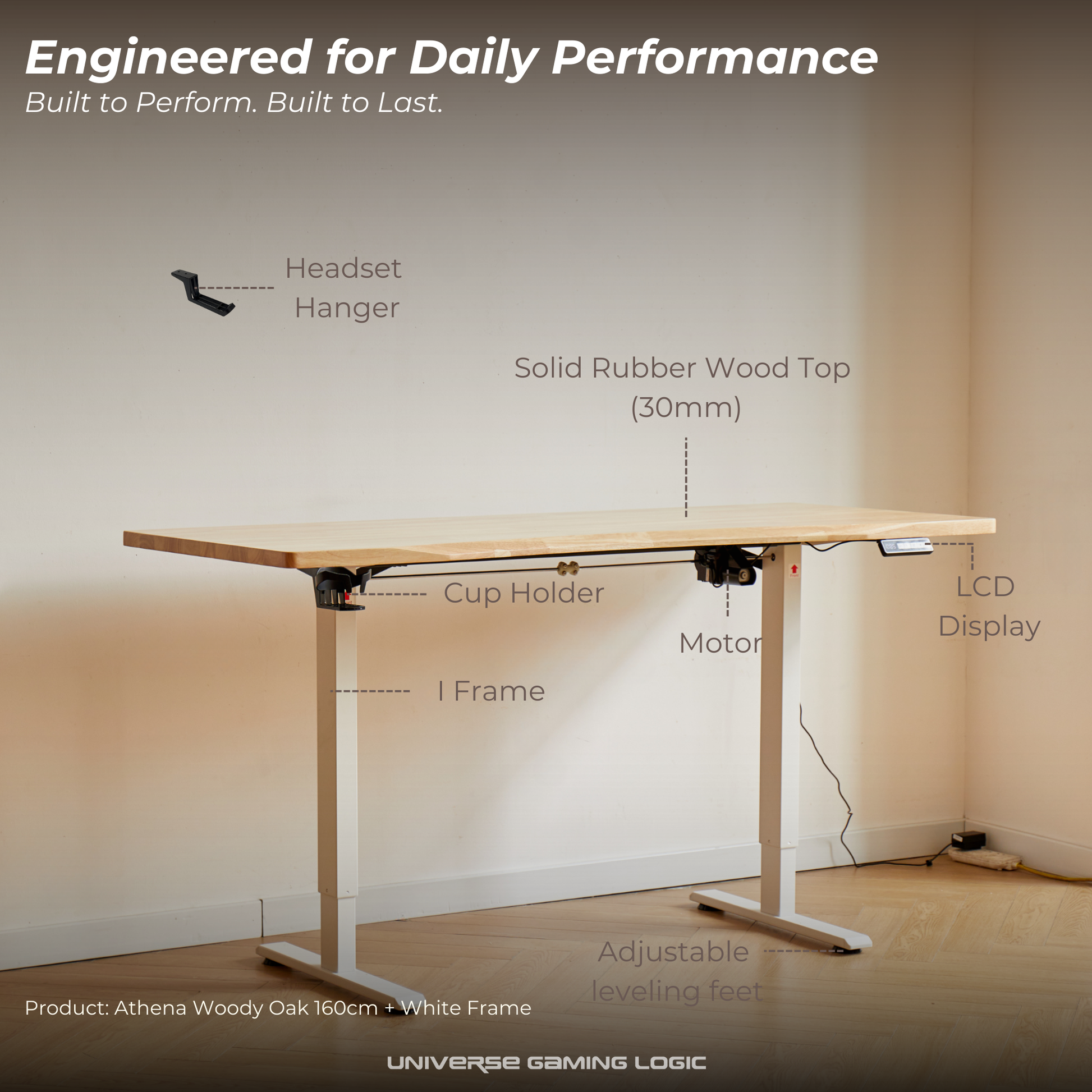 Experience the perfect combination of functionality, style, and durability with our Athena Woody Standing Desk—the ultimate choice for professionals and creatives. This is the first solid wood standing desk introduced to our collection after three years of customer requests, crafted to meet your needs for quality, comfort, and elegance.
